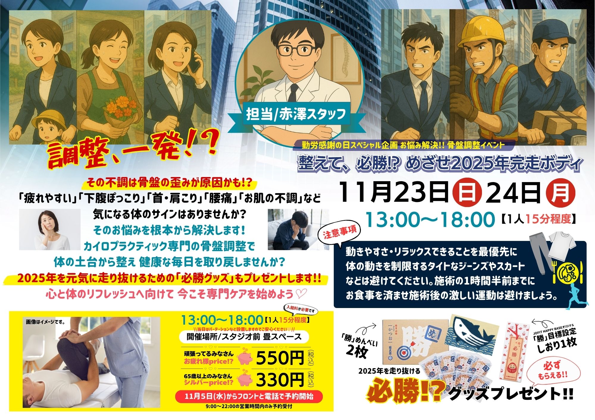 勤労感謝日スペシャル企画 お悩み解決!! 骨盤調整イベント