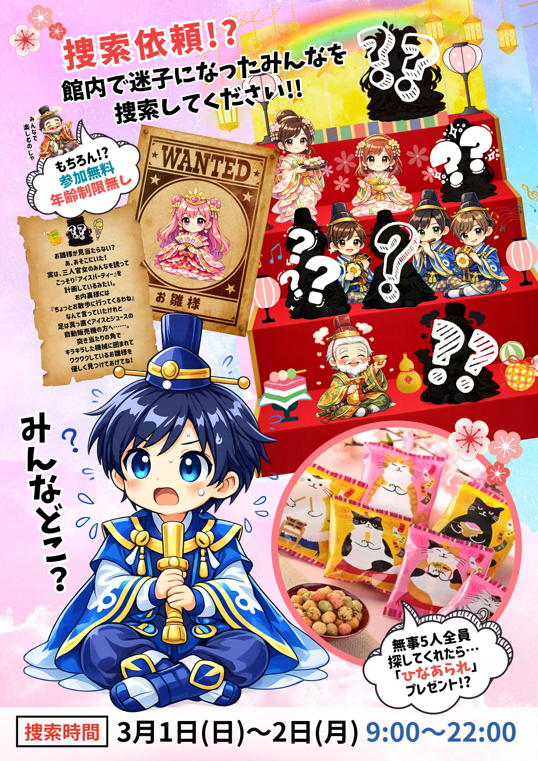 【緊急捜査依頼!?】いなくなったお雛様たちを捜索せよ!ひな祭りイベント開催!